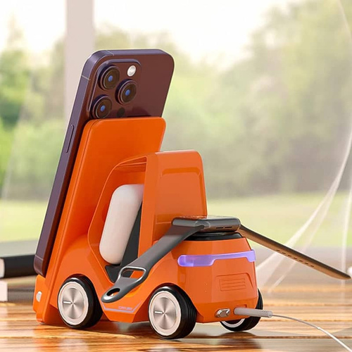 این محصول یک شارژر بی سیم بسیار باکیفیت است که بطور ویژه برای ست آیفون طراحی شده و قسمت شارژ موبایل آن برای گوشی های سامسونگ که دارای فناوری شارژ وایرلس هستند نیز قابل استفاده است. این دستگاه علاوه بر بر شارژ گوشی موبایل، ایرپاد، و ساعت دارای ساعت دیجیتال ( جلوی دستگاه) و نور شب (پشت دستگاه) نیز هست. ابعاد: 15.6x7.4x14.6 سانتی متر