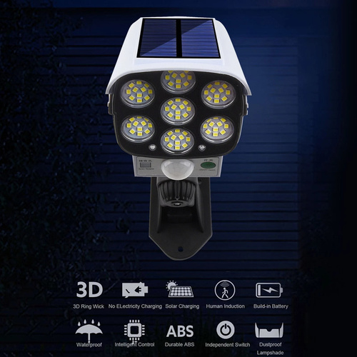 این یک لامپ دیواری خورشیدی با طراحی ظاهری دوربین مداربسته شبیه سازی است که می تواند در مکان های مختلف مانند دروازه ، راهرو ، حیاط و غیره نصب شود. امکانات: شبیه سازی طراحی دوربین مداربسته جهت جلوگیری از سرقت 3 حالت روشنایی: اول: وقتی کسی می آید نور زیاد را روشن کنید. بعد از رفتن افراد به مدت 20 ~ 25 ثانیه ، خاموش شوید. دوم: کسی می آید نور زیاد را روشن کنید. به معنای حالت نور ضعیف پس از رفتن افراد به اندازه 20 ~ 25 ثانیه است. سوم: بدون القا 30٪ روشنایی نور زیاد. از کنترل از راه دور پشتیبانی کنید. تغییر حالت های روشنایی آسان است. 77 LED روشن و دامنه روشنایی بزرگ. زوایای روشنایی قابل تنظیم. (چرخش افقی 360 درجه و چرخش عمودی 90 درجه)