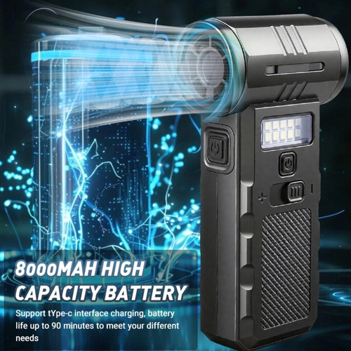 جت فن مدل جارویی چراغدار یک فن قدرتمند با قایلیت تنظیم سرعت پیوسته، شارژ سریع Type-C نور هشدار قرمز COB. این محصول با طراحی مقاوم و لوازم جانبی متنوع، مناسب برای کمپینگ، تعمیرات و شرایط اضطراری می باشد. این مدل دارای قابلیت مکنده و سری برای نظافت و جارو کردن هم قابل استفاده میباشد