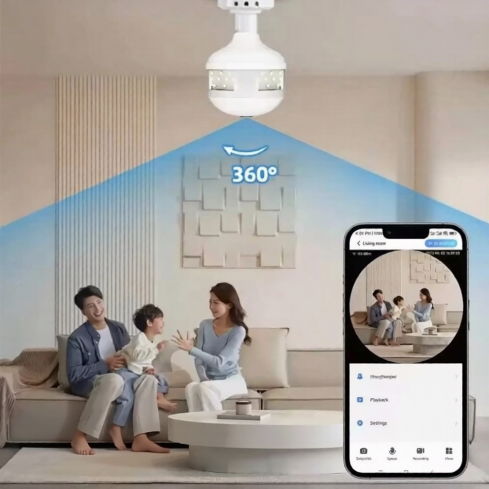 در نگاه اول، دوربین لامپی پانوراما تفاوت چندانی با یک لامپ LED معمولی ندارد. همین ویژگی، آن را از نظر کاربردی بسیار خاص میسازد، زیرا میتواند بدون جلب توجه در محیط نصب شود . بدنهی این دوربین از پلاستیک مقاوم ساخته شده و پایهی آن از نوع E27 است، یعنی همان پایه استاندارد لامپهای خانگی. بنابراین، برای نصب آن به هیچ ابزار خاص یا سیمکشی جداگانهای نیاز نیست؛ کافی است دوربین لامپی پانوراما را همانند لامپ در سرپیچ ببندید.