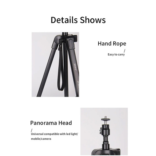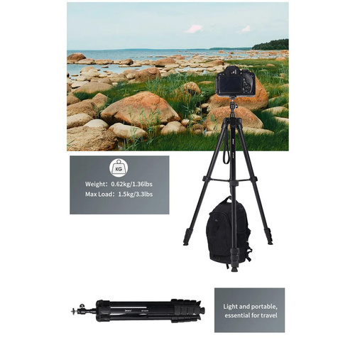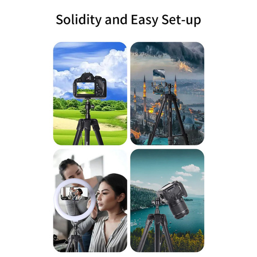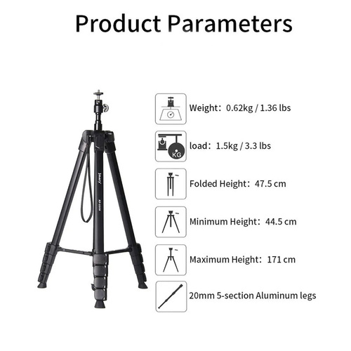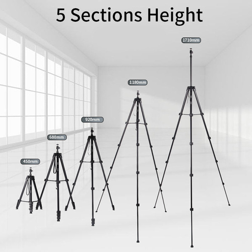 این سهپایه دارای ساختار آلومینیومی سبک است که در عین سبک بودن، از استحکام بالایی برخوردار است و میتواند دوربینهای مختلف با وزنهای مختلف را بهراحتی نگه دارد. این مدل قابلیت تنظیم ارتفاع از 44.5 تا 171 سانتیمتر را دارد و به شما این امکان را میدهد تا زاویه دید دلخواه خود را به راحتی تنظیم کنید. این ویژگی بهویژه در عکاسی از مناظر وسیع یا عکاسی با لنزهای بلند بسیار کاربردی است.