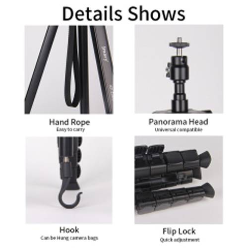 یکی از ویژگیهای برجسته این سهپایه، پایههای قابل تنظیم آن است که به شما امکان میدهند در سطوح ناهموار نیز تعادل و ثبات را حفظ کنید. همچنین سیستم قفل سریع پایهها باعث میشود تا در زمانی کوتاه و بدون هیچ مشکلی، سهپایه را آماده استفاده کنید. علاوه بر این، سهپایه جیماری دارای یک هولدر موبایل است.